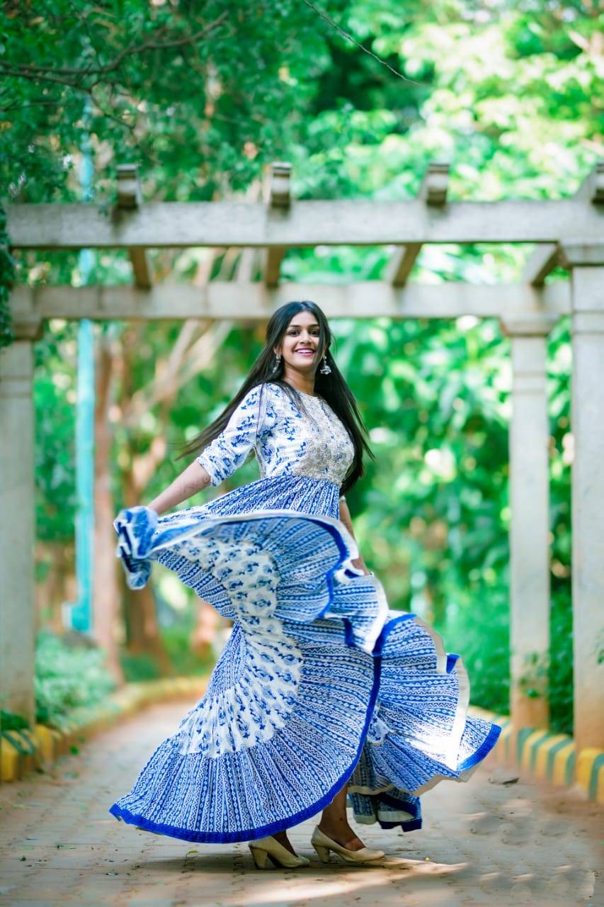 The Cotton Printed Frill Dress features a beautifully embroidered yoke with intricate gotta work, adding a traditional touch to the modern design. The frilled hem and light cotton fabric create a relaxed, comfortable fit, perfect for casual outings or daytime events.